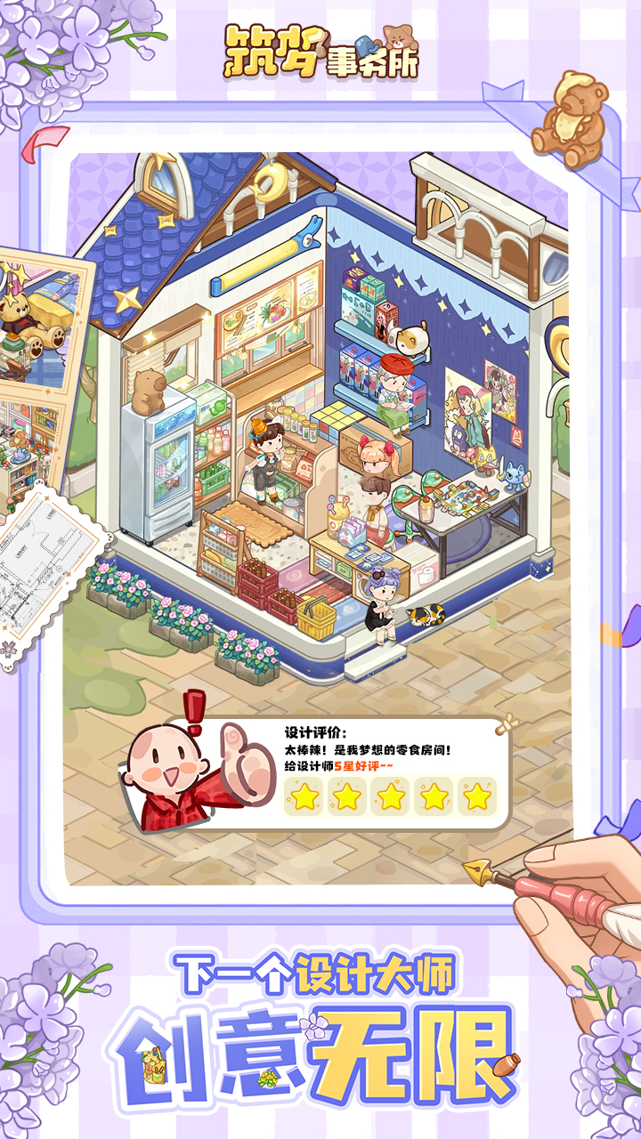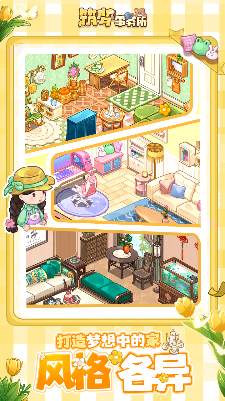 《筑梦事务所》是一款模拟装修慢节奏经营游戏,在这里你可以从一个初出茅庐的设计师成长为装修大师,帮助委托人们打造自己梦想中的“家” 【接管事务所】 神秘小狗认定你就是全宇宙最厉害的装修大师,小小事务所从天而降!虽然名不见经传,但总有各色委托人找上门来,承接各种温馨或者奇葩的委托,满足客户的奇思妙想(๑•̀ㅂ•́)و✧